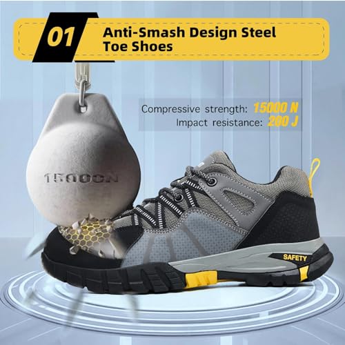 Steel Toe Shoes for Men Women Work Sneakers Safety Shoes Indestructible Comfortable Lightweight Breathable Safety Puncture Proof Shoes for Constructions
