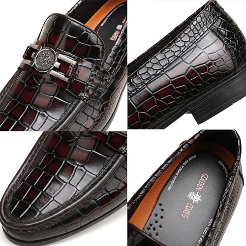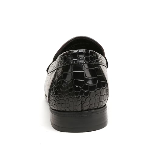 Mens Genuine Dress Shoes, Premium Crocodile Print Leather Slip-on Casual Shoes Penny Loafers for Mens, Black