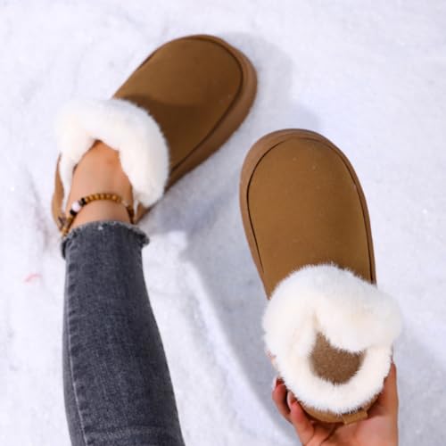 Women's Ankle-Length Platform Boots, Fuzzy Warm Ankle Shoes - Winter Indoor Outdoor Snow Boots