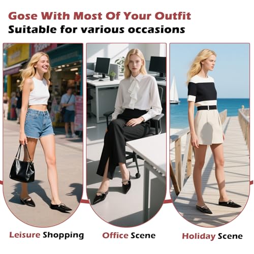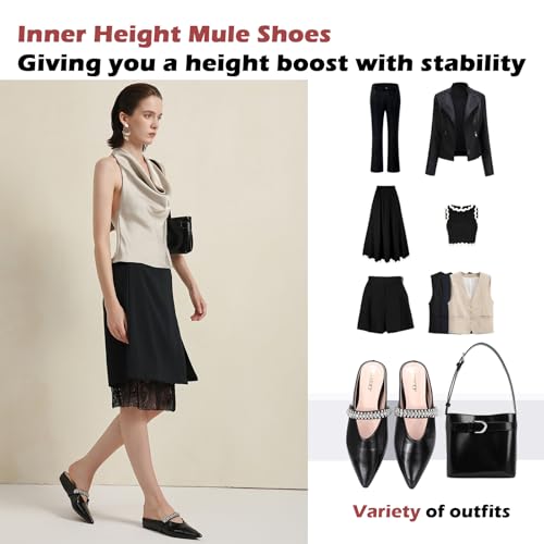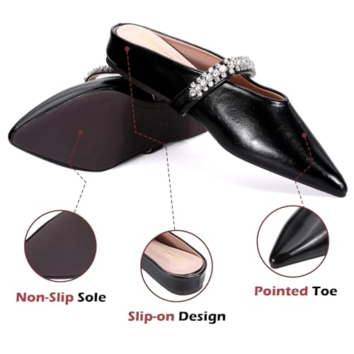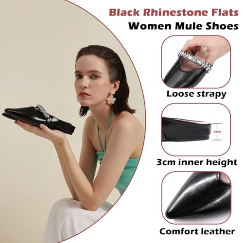 ‌Women's Rhinestone Pointed Toe Mule Flats – 2cm Inner Height Increase, Backless Ballet Slippers for Work, Parties & Shopping