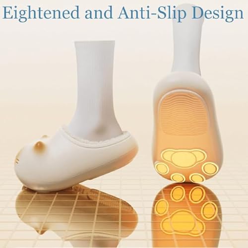 2026 Cat Paws Footprints Fluffy Plush Fleece Height Increase Slippers - Cute Animal Ultra-Thick Slipper with Paw Print