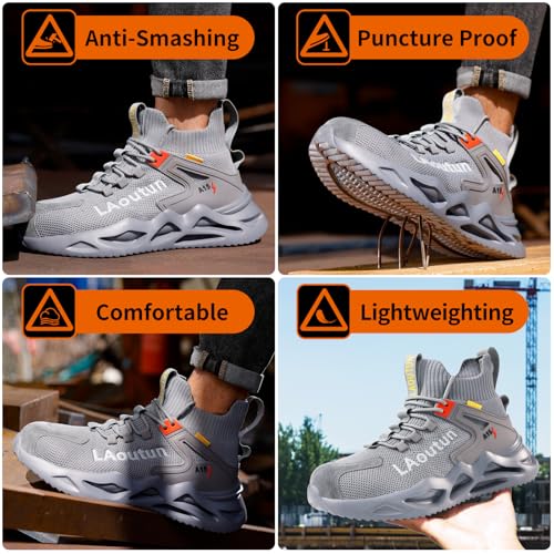 LAoutun Steel Toe Shoes for Men Work Shoes Safety Sneakers Comfortable Lightweight Puncture Proof Slip on Indestructible Construction Work Shoes