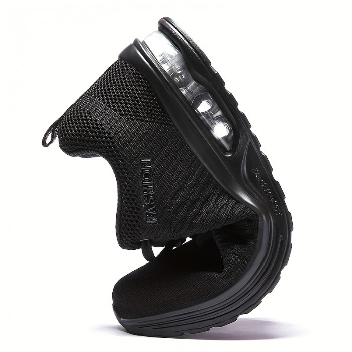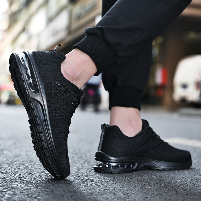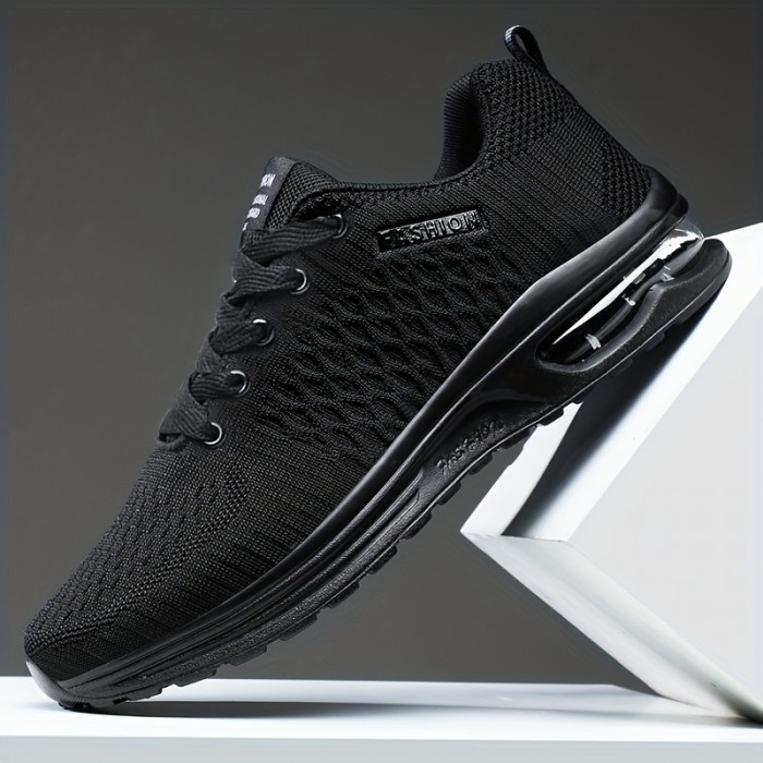 Men's Air Cushion Shock Absorption Knitted Lightweight Breathable Lace Up Athletic Shoes For Outdoor Running Walking